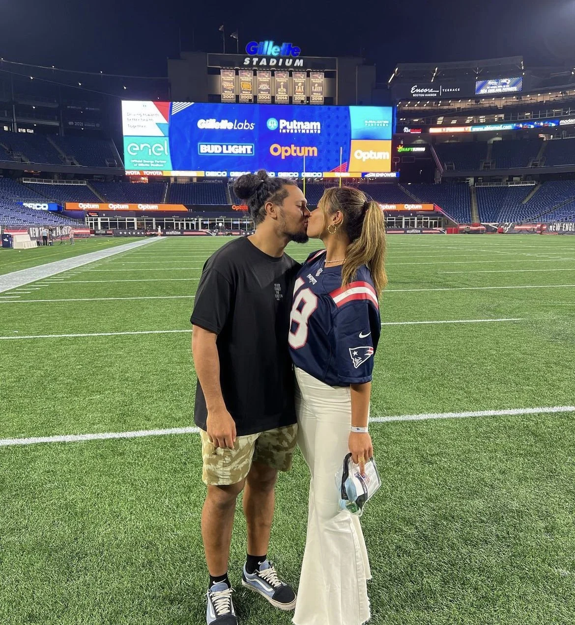 Kalei is romantically linked to professional football player, New England Patriot, Jahlani Tavai. This dynamic duo is seen regularly on her Instagram page traveling, wearing matching outfits and making memories with each other. Kalei is oftentimes spotted rocking his #48 jerseys at arenas across the country, among the Patriots superfans and family.