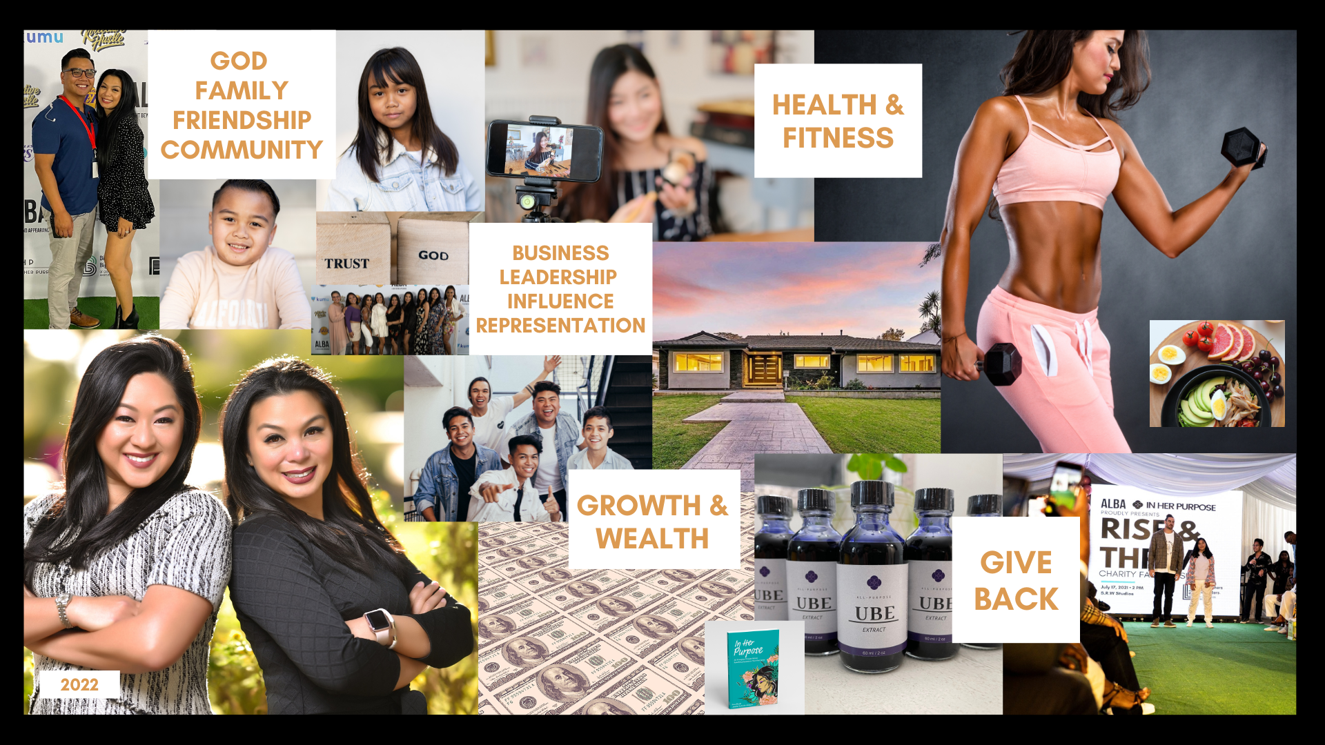 Asia Jackson, a Los Angeles based Filipina American actress and content creator, has been creating videos that are dedicated to encouraging others to be the best versions of themselves through fashion, beauty, self-care, and vlogs. In her vision board for 2021, she said that almost everything she put on it has come true, including getting her dream car, a Tesla! During 2022, her vision board reflects on “stabilizing” to prepare her for more growth for the future. I wonder if she plans to put out a 2023 video?