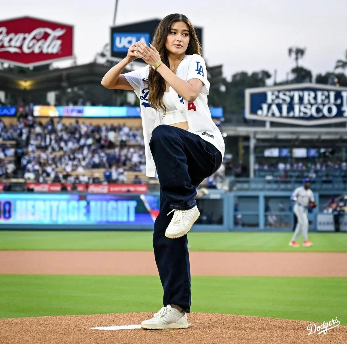 The sun is beginning to set, the weather is perfect, we got great music, and amazing food. What better way is there to kick off Filipino Heritage Night, than with 2 of the biggest (and I mean THE biggest) names in Filipino pop culture? Liza Soberano and Jeff Bernat *fan girling immensely inside* have taken the field!! Considered one of the most beautiful women in the Philippines and over 18M followers on Instagram, California born Lisa Soberano is one of the most popular Filipina Actresses in the Philippines, starring in romantic drama roles such as Forevermore and My Ex and Whys. Soberano’s Ceremonial First Pitch was beautifully delivered as she easily cleared home plate, making the pitch as perfect as she is.