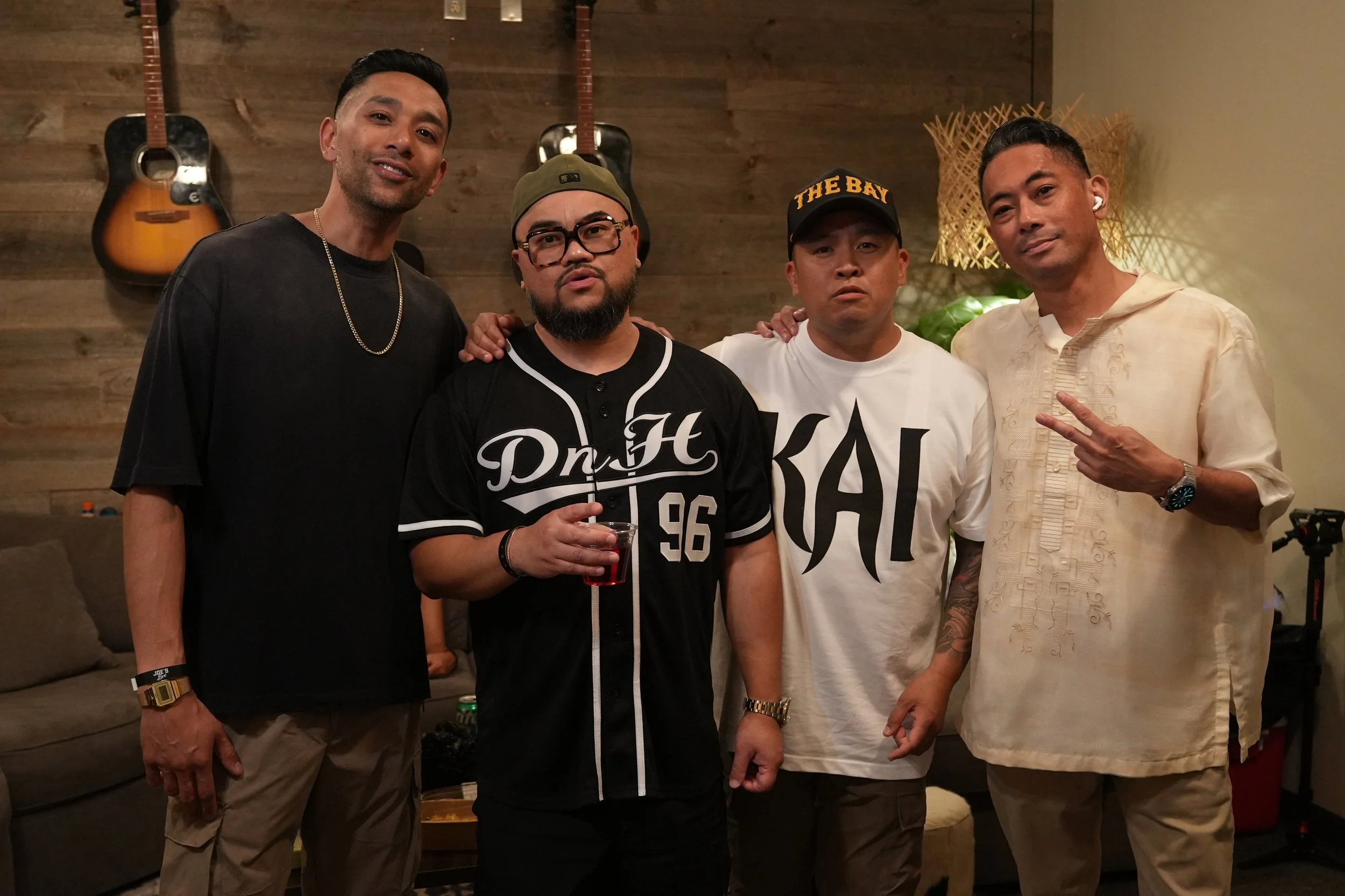 R&B group, KAI, with Dynasty Entertainment's cofounder Lyle Del Mundo, warming up backstage, at Dynasty Entertainment's 'Reunion: A Dynasty Homecoming', a day party celebration benefit fundraiser for Bata Sole and the AC Lorenzo Music Scholarship Fund, at Joe's Live, in Rosemont IL, on Sunday, August 10th, 2025. Photo Credit: Justin Pagsisihan and Alex Callejo