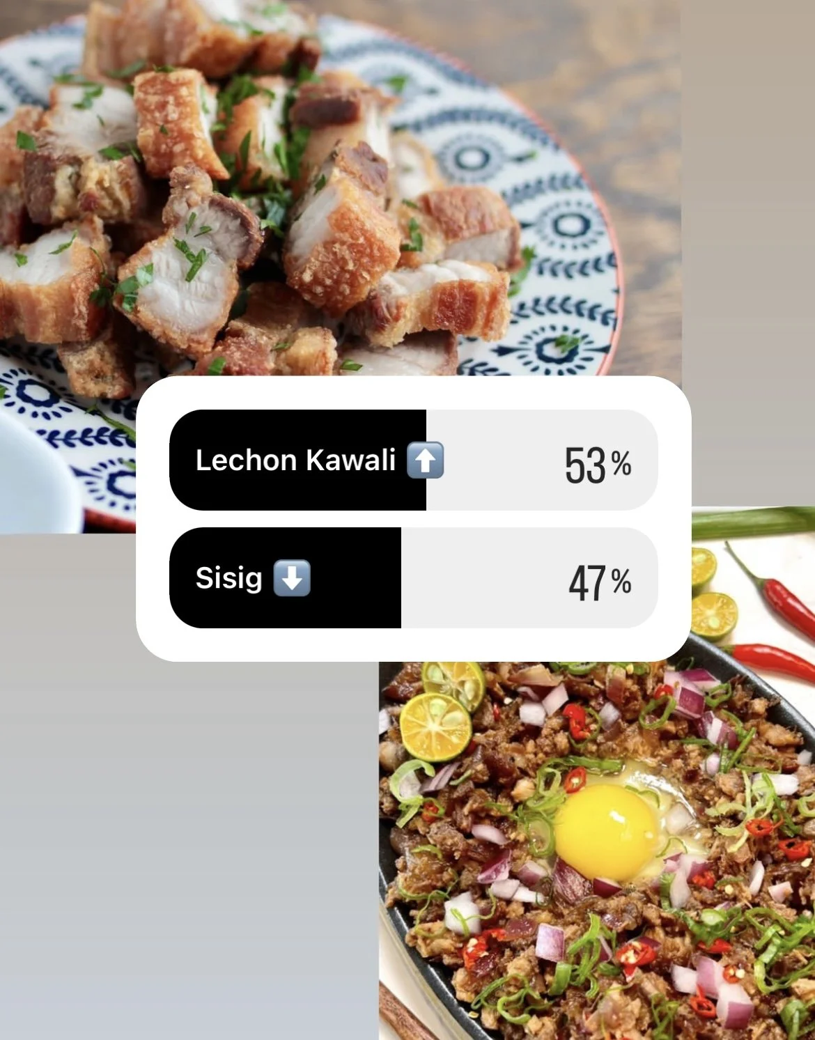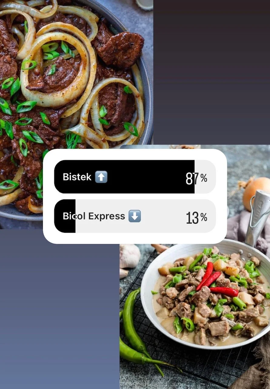One of my favorite dishes as a kid, Bistek is made of thinly sliced beef with a generous amount of onions, pepper, and lemon, that harmoniously melts over a bowl of rice. Bicol Express on the other hand, is a pork stew cooked in coconut milk and chili peppers that bring both sweet and spicy with every bite, it's rich, creamy, spicy, and delicious. With one of the biggest wins in our survey, 83% to 13%, people have voted that there’s no place like home with a plate of Bistek waiting for you.