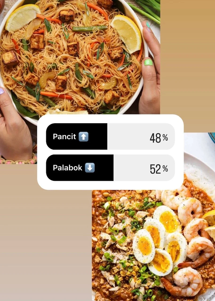 Pancit is the Philippines marquee noodle dish that comes in numerous variations but the most common is the thin rice noodle version served with peeled shrimp, veggies, sometimes pork, and a squirt of lemon. However, the common rival to pancit is the heartier palabok counterpart. Palabok has a thicker noodle made from cornstarch sticks with additive textures like crushed chicharon, tinapa flakes, contrasting other textures like hard boiled egg and orange sauce. This poll was neck and neck the entire time, with Palabok narrowly beating out pancit 52% to 48%.